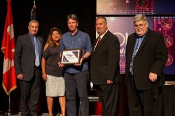 Stan Pickthall accepting the awards on behalf of Benoit Blanchette, IAM Secretary