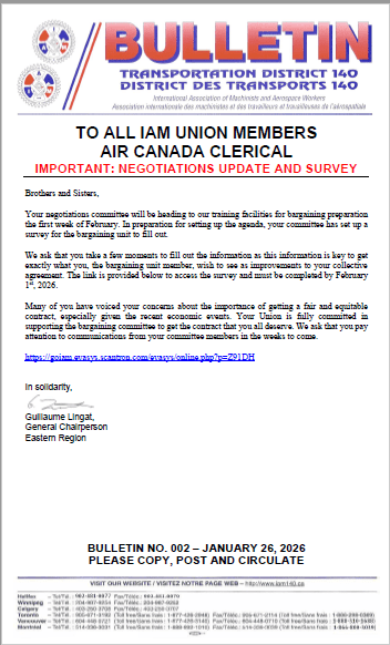 TO ALL IAM UNION MEMBERS AIR CANADA CLERICAL