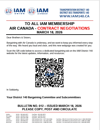 TO ALL IAM MEMBERSHIP AIR CANADA – CONTRACT NEGOTIATIONS